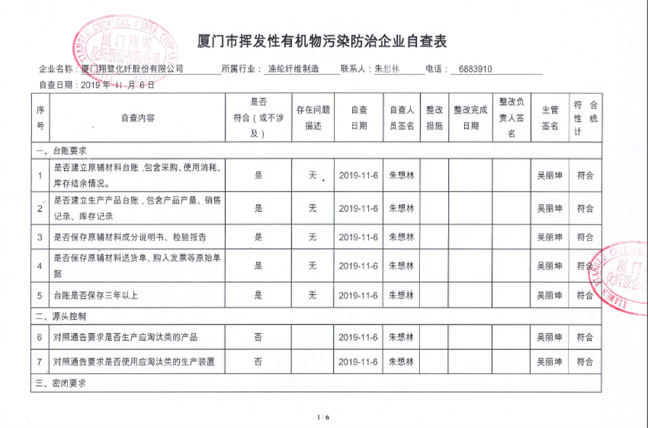 廈門(mén)市揮發(fā)性有機(jī)物污染防治企業(yè)自查表(2019年第四季度)