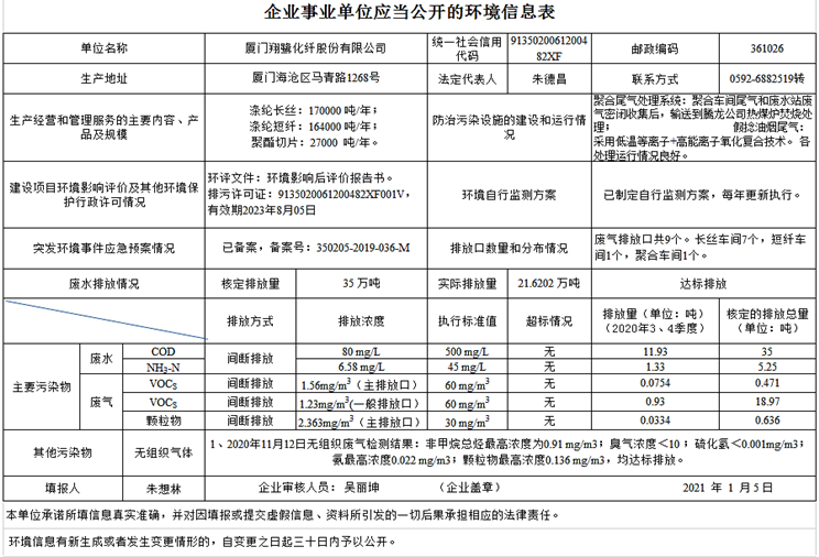 翔鷺化纖2020年度應當公開的環(huán)境信息表.xlsx